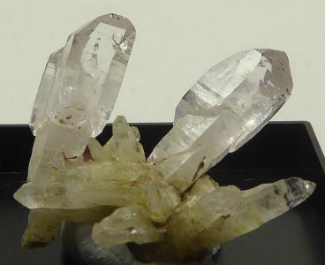 QUARTZ / Las Vigas de Ramírez, Veracruz, Mexique / Très belle pièce montrant plusieurs quartz dont deux sont sceptres. Le plus grand mesurent 1,8 cm et l'autre 1,6 cm. Livrée dans une boite plexi.