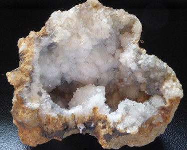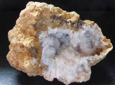 QUARTZ (geode) / Douazit, Landes, France / Jolie demi géode de quartz montrant des cristaux laiteux mesurant jusqu'à 0,7 cm