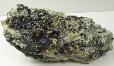 SPHALERITE / Les Malines, Saint Laurent le Minier, Gard, France Superbe pièce de sphalérite montrant de beaux cristaux brillants mesurant 0,5 cm pour les plus grands. Les faces sont parfaites et l'éclat adamantin montre un couleur parfois rougeâtre.